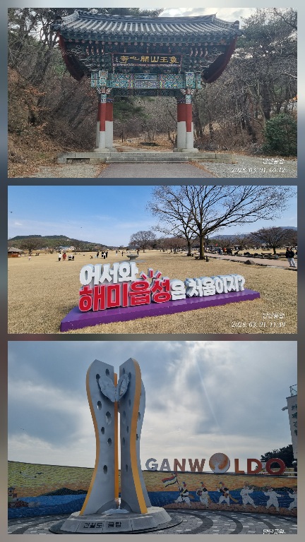 나올 때 거의 바닷물이 빠지고 있어 스님의 보트는 운행중단되었지만, 완벽하게 빠지진 않아 건너기엔 신발이 젖을 수 있는 상태에서, 기다리다 못한 어느 한 아버지가 과감히 신발을 벗고 아이와 아내를 업어 길을 건너자.. 길이 열리길 기다리던 수많은 인파들이 와~하며 박수갈채~❤